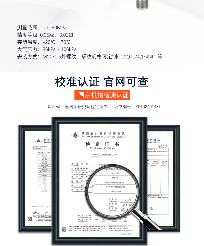 精密壓力表主要用來校驗工業用普通壓力表,也可用于在線測量高精度工作介質的壓力。是壓力測量測試、檢測校驗、檢驗檢定等壓力參數相關領域中常用的一種計量標準器。 精密壓力表原稱標準壓力表,在我國也有多年的生產歷史,已有完整的系列和齊全的規格型號,執行國家標準GB-1227和檢定規程JJG-49。其結構簡單、性能穩定、指示直觀形象及其高性價比和完整的系列使之在石油、化工等行業,在生產和科學實驗等環節,在各級壓力量值傳遞和計量檢定部門有著相當廣泛的應用。